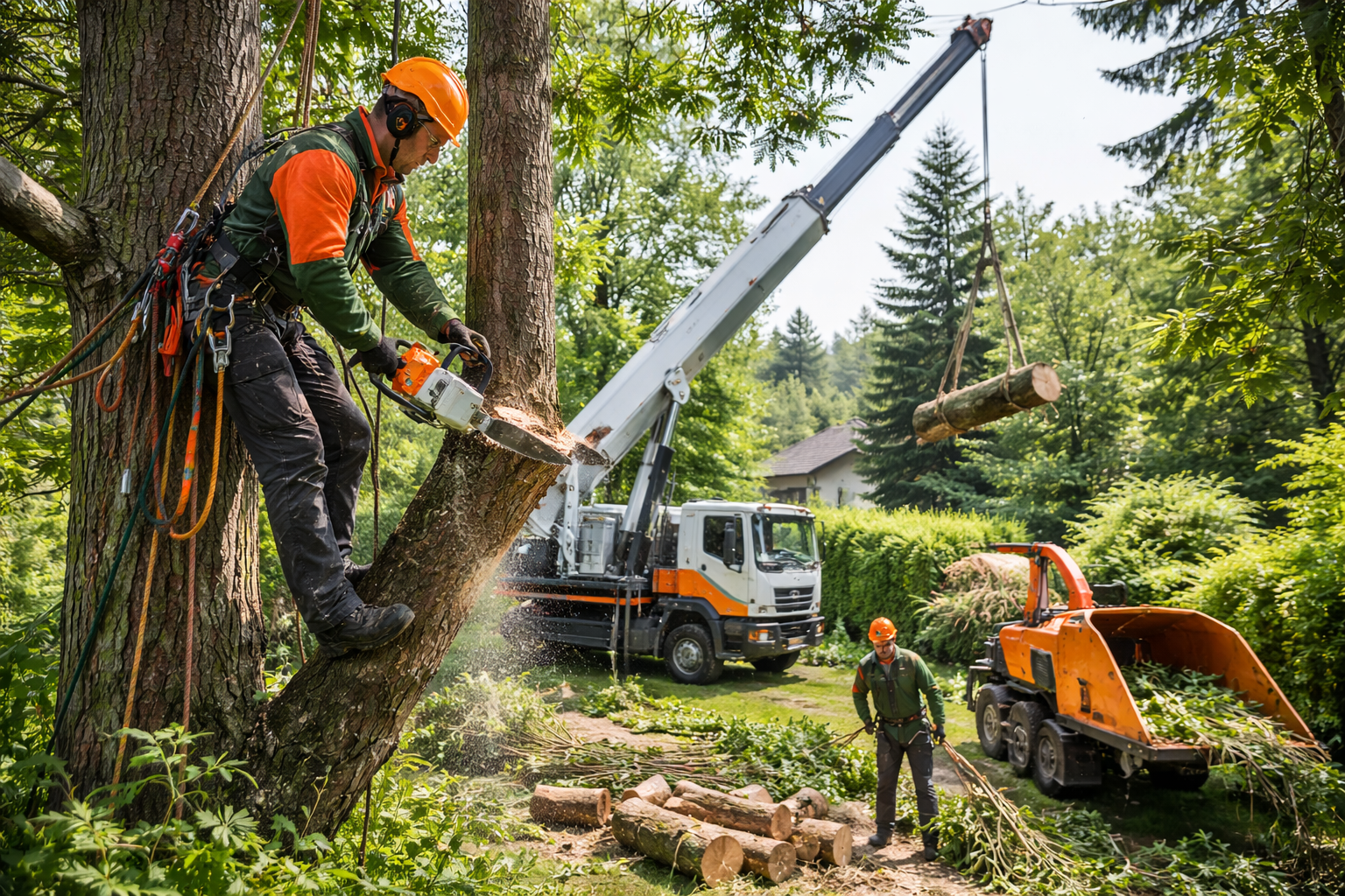 Sicherer Rückschnitt, Pflege und Fällarbeiten inklusive Aufräumen.